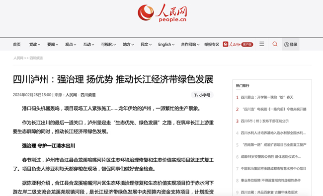 媒體(ti) 聚焦|人民網報道伟德官网手机版四川瀘州合江縣項目建設