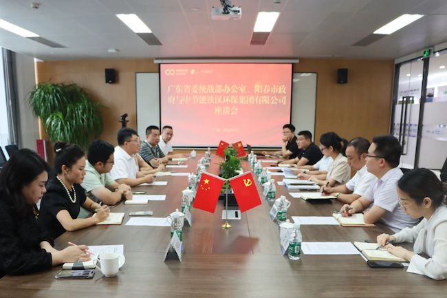 9月23日,廣東(dong) 省委統戰部辦公室主任、陽春市委副書(shu) 記莊灝一行赴伟德官网手机版所屬鐵漢環保考察調研,雙方就深化項目合作、切實推進合作進行座談交流。